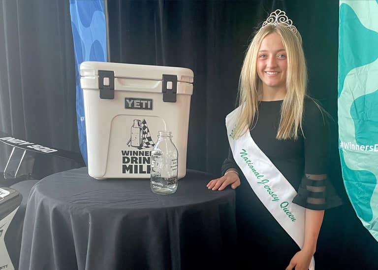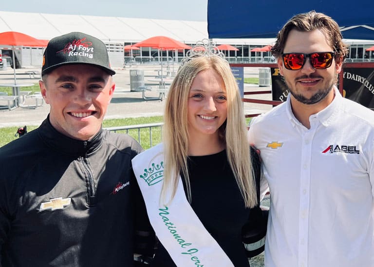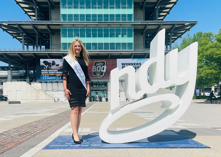 Jackie Mudd, a senior at Purdue University, proudly hails from the state of Indiana. She has been actively involved in the Jersey dairy industry for many years, advocating for the Jersey breed on many occasions. Last year at the All American Jersey Show in Louisville, Kentucky, she was crowned as the 2022 National Jersey Queen. This experience has given her a platform to advocate for the Jersey at many events, including community outreach activities, in elementary and middle school classrooms and at on-campus events. Most recently, she had the unique opportunity to promote the Jersey cow at the largest platform in the race car industry – the Indianapolis 500 racetrack.